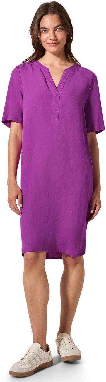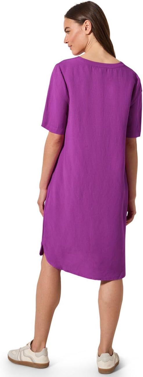 Den knälånga klänningen från CECIL för kvinnor imponerar med sin slitsade halsringning och sidoslitsar för en avslappnad passform. Den lätta linneblandningen säkerställer en bekväm passform, medan den kortärmade looken är perfekt för sommardagar. En okomplicerad följeslagare för varma temperaturer!