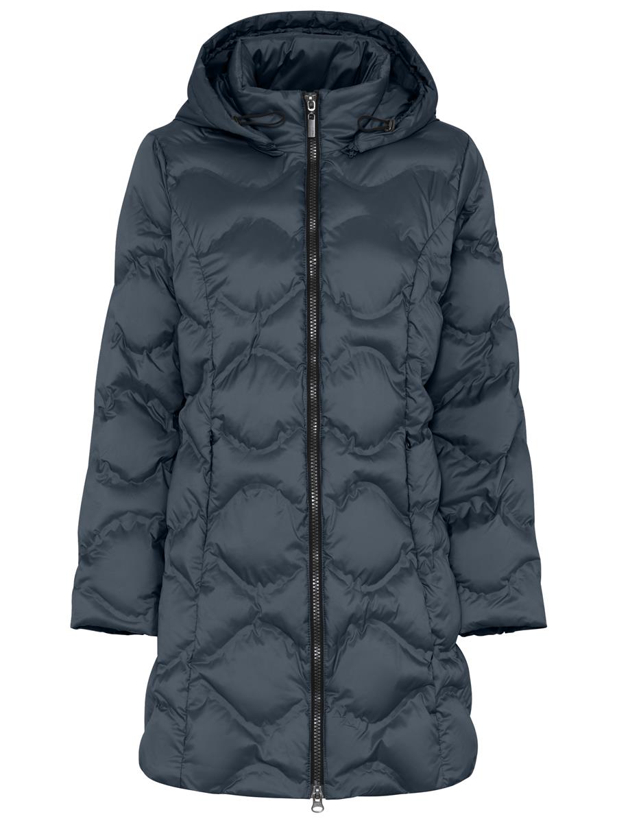 Lång dunjacka från Etage i ett snyggt quiltat mönster.