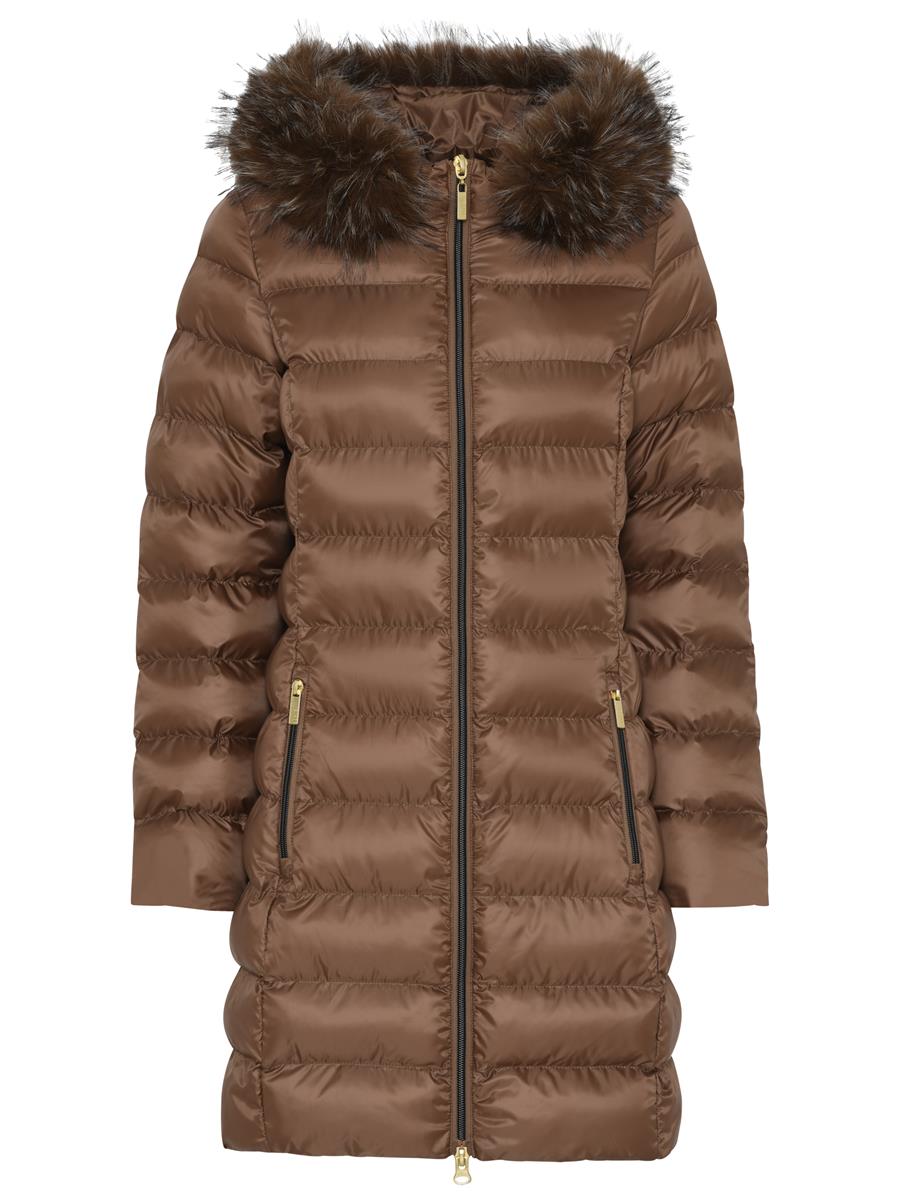 Vinterjacka från Etage. Den har en tvåvägs dragkedja och dragkedjefickor på sidan, jackan har även en vacker huva med konstpälsdetaljer.