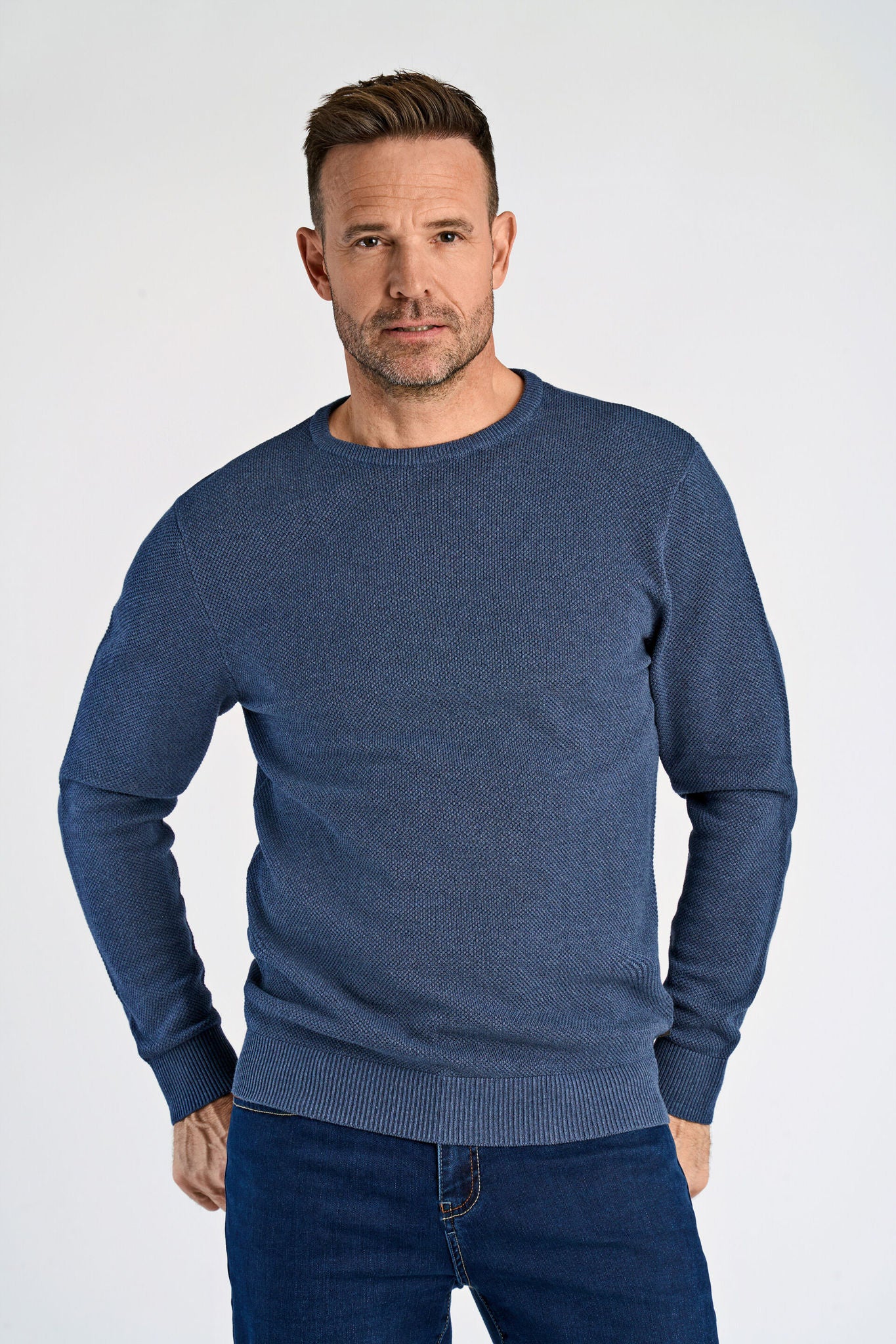 Stickad tröja från Jack's gjord av 100% bomull. Tröjan är enfärgad och gjord i en strukturstickning. Den har ribbstickning nedtill på tröjan och på ärmarnas nederkant. Logoplåster längst ner på vänster sida.