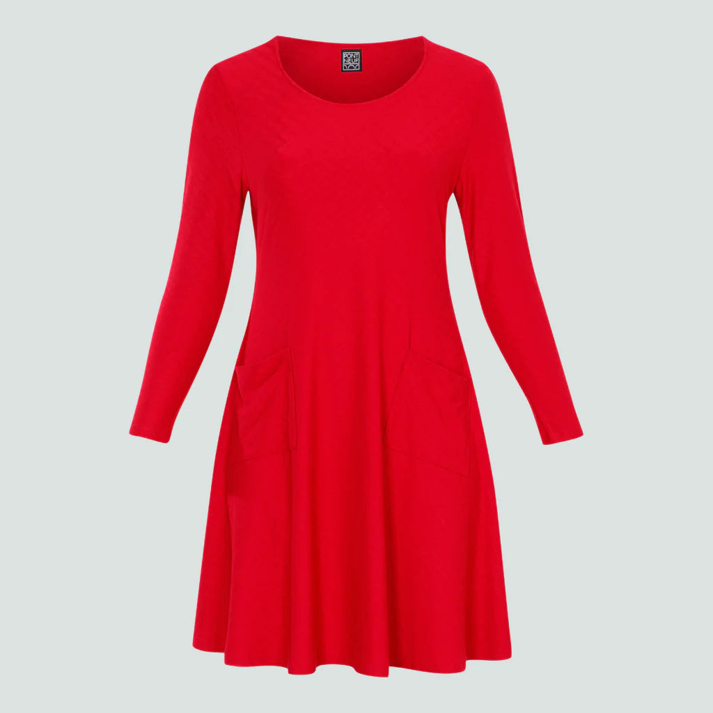 Söt klänning i en enfärgad design med framfickor, långärmad och rund urringning. Klänningen har en tajt passform med mycket rörelse längst ner, och den är gjord av bästa viskoskvalitet med generös stretch.